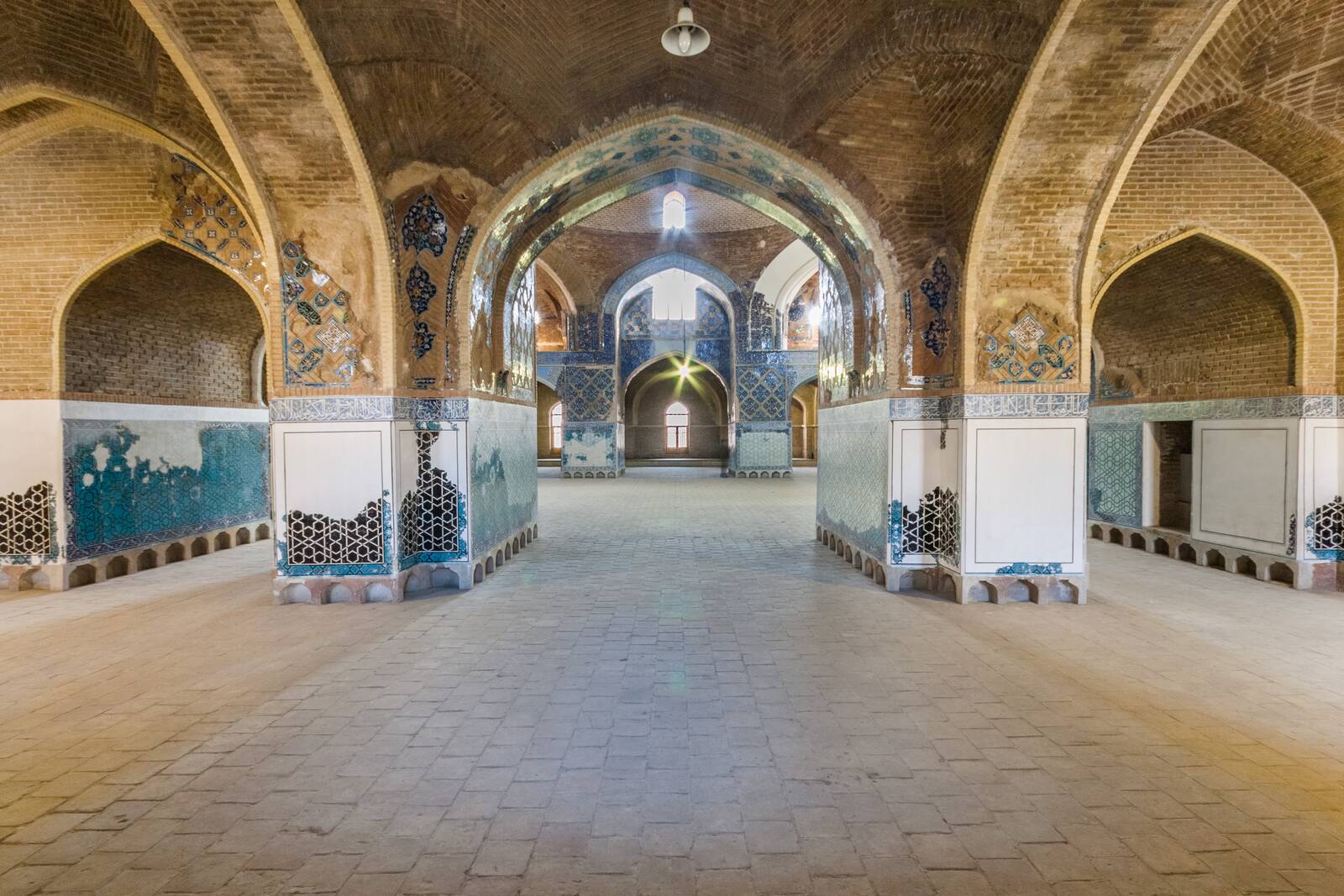 با اینکه مسجد کبود تبریز در زلزله سال 1158 خورشیدی آسیب جدی دیده است، اما هنوز جزئیات و تزئینات ظریف طلاکاری را بر روی سقف آن میتوان دید.