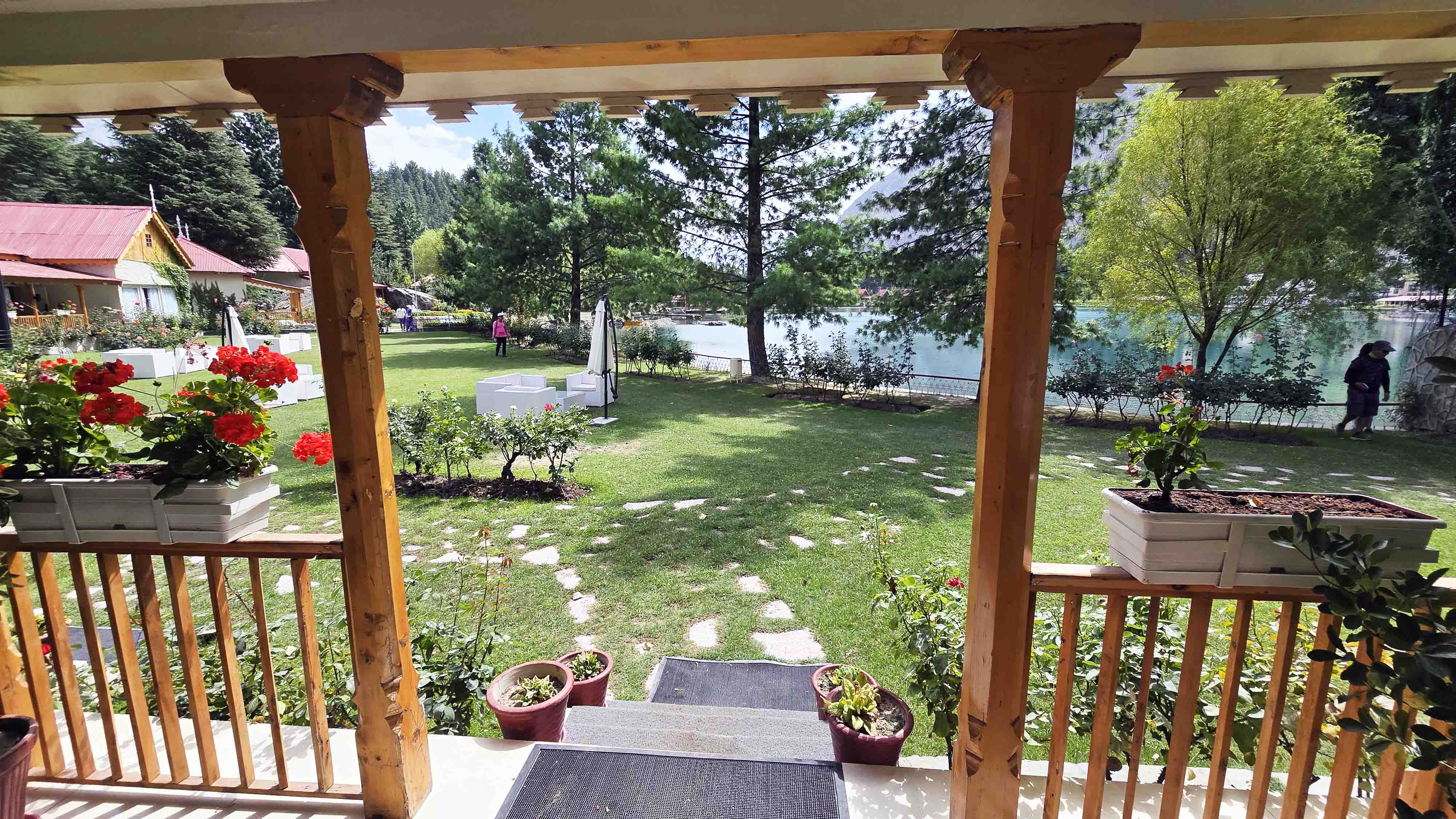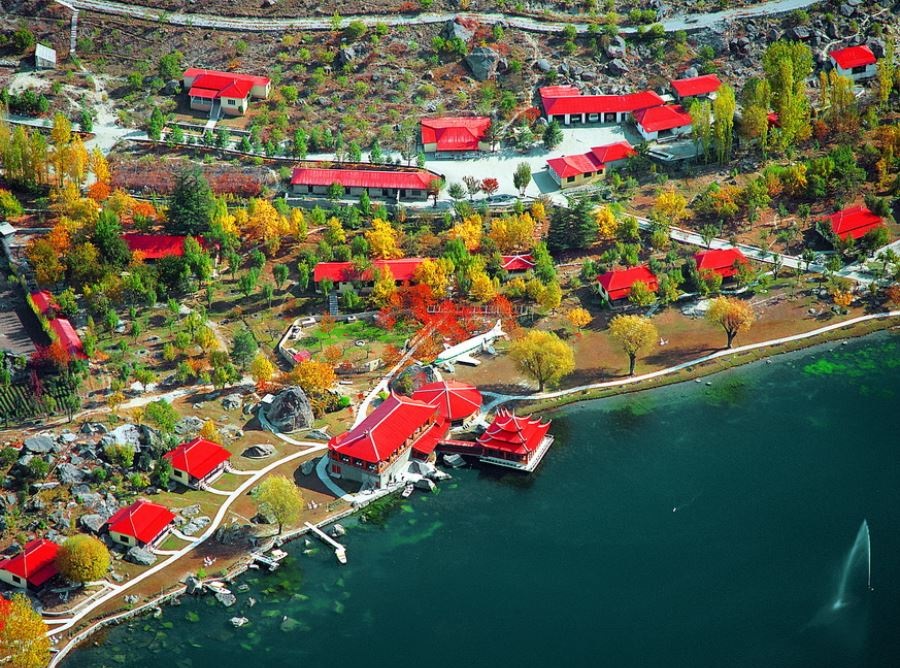 مهدی توضیح داد که اینجا یکی از محبوبترین مقاصد گردشگری در شمال پاکستان است و گردشگران برای قایقسواری بر آبهای آرام و پیادهروی در مسیرهای اطراف آن به اینجا میآیند. او به هتل مجلل شانگریلا که در کنار دریاچه با معماری سنّتی و باغهای پلکانی بسیار زیبا خودنمایی میکرد، اشاره کرد و گفت هزینه اقامت در آن بسته به فصل بین ۱۵,۰۰۰ تا ۲۵,۰۰۰ روپیه متغیّر است، امّا در اسکاردو و اطراف، گزینههای مقرونبهصرفهتری نیز وجود دارد. ما ساعتی را به قدم زدن در کنار دریاچه و لذّت بردن از دیدن قوهای سفید و منظره کوههای اطراف گذراندیم. اینجا تنها اوّلین ایستگاه ما در یک روز پرهیجان بود. همانطور که از دریاچه دور میشدیم، آرامش وصفناپذیر این منطقه همچون هدیهای گرانقدر در وجودم جا خوش کرده بود.پس از وداع با نگین فیروزهای، مهدی با همان لبخند همیشگی اشاره کرد: «حالا نوبت دیدن خواهر کوچکتر است؛ دریاچه کاچورا که برخی آن را بالاچا کاچورا هم مینامند.» مسیر حرکت ما به سمت این دریاچه، دیگر آن جاده اصلی نبود، بلکه گذری باریک و روستایی که در میان باغهای زردآلو و سیب و گردو پیچ میخورد. هوای معطر شده به بوی میوههای رسیده، همراه با صدای زنگوله گلهای گوسفند که از دور به گوش میرسید، فضایی سرشار از زندگی و سادگی روستایی را پیش روی ما گذاشته بود. ارتفاع کمکم بیشتر میشد و با هر پیچ جاده، نمایی گستردهتر از درههای اطراف خودنمایی میکرد.