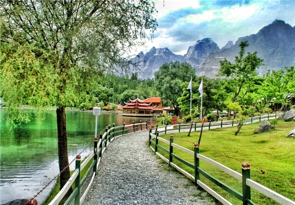 پس از حدود بیست دقیقه رانندگی در این مسیر خیرهکننده، با عبور از میان گذرگاهی سرسبز، دریاچه شانگریلا ناگهان، همچون نگینی فیروزهای درون صندوقچهای از کوه و سبزه، هویدا شد. هوای پاک و خنک ارتفاعات، سطح آرام و بیدغدغه آب را نوازش میکرد. انعکاس آسمان آبی و ابرهای پنبهای در آبهای زلال دریاچه، صحنهای تقریباً غیرواقعی و رویایی پدید آورده بود. این دریاچه که با نام دریاچه پایین کاچورا نیز شناخته میشود، در فاصله تقریبی ۲۲ کیلومتری از شهر اسکاردو و در ارتفاع حدود ۲۵۰۰ متری از سطح دریا قرار دارد. مساحت آن حدود ۱.۵ هکتار است و محیط اطرافش را باغهای میوه و تپههای سرسبز فرا گرفتهاند. نام شانگریلا را از بهشت گمشده جیمز هیلتون وام گرفتهاند.