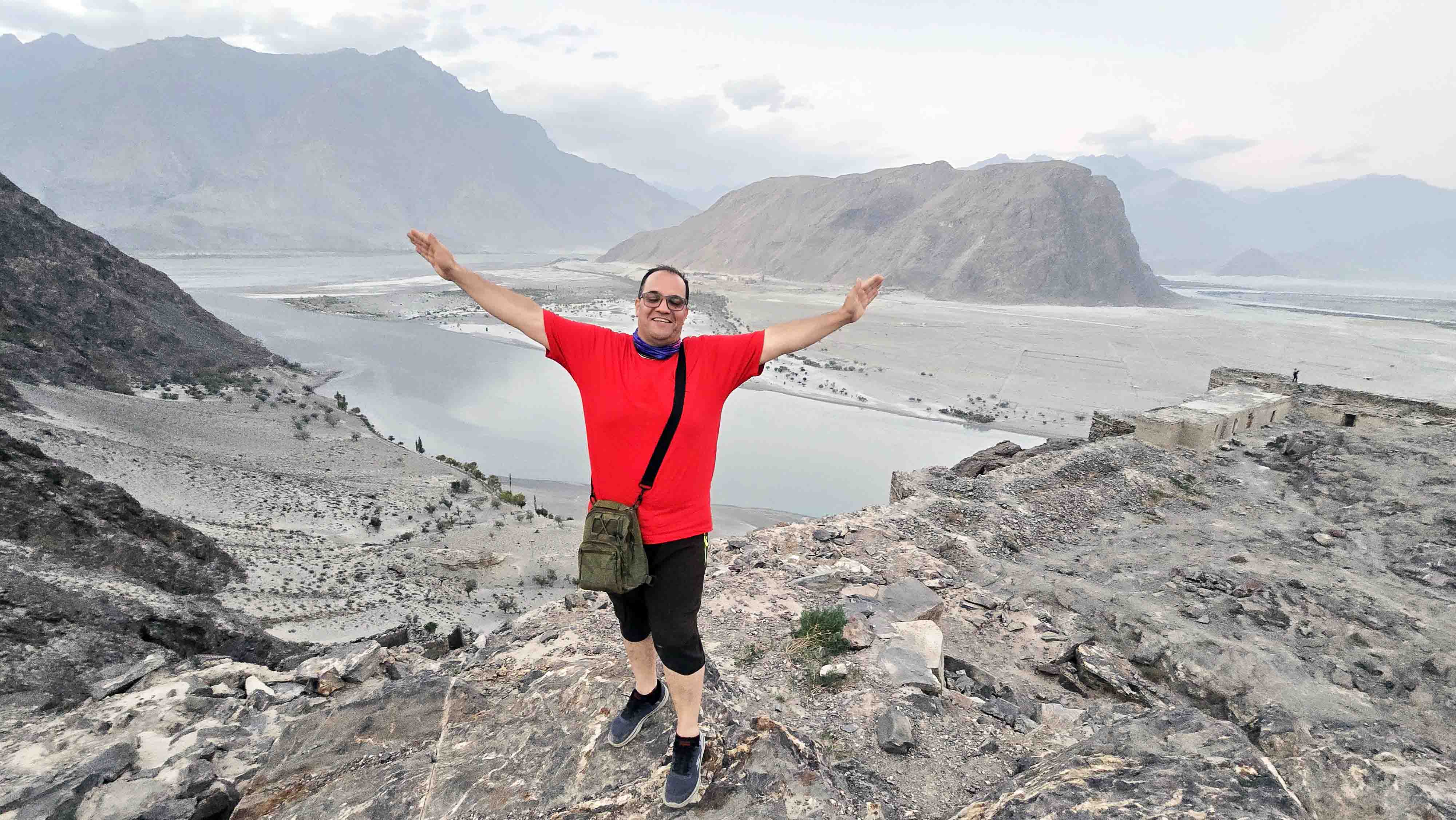 آن سوی شیشه، قلّههای سفیدپوش قراقروم، همچون غولهای آرام و ابدی، در نور طلایی سحر غرق شده بودند. خورشید تازه از پشت کوهستان بالا میآمد. کوهها آنقدر نزدیک به نظر میرسیدند که گویی میتوانستم سرم را از پنجره بیرون ببرم وبرفها را با نوک انگشتانم لمس کنم. هوای سرد و پاک صبحگاهی از لای درز پنجره به درون نفوذ میکرد و صورتم را نوازش میداد. صدای آرام جریان رودخانه سند از دوردست به گوش میرسید. بر روی شیشه پنجره، نقش و نگارهای یخی که حاصل شب سرد اسکاردو بودند، خودنمایی میکردند.